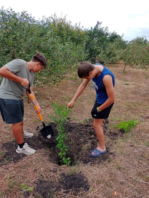 Студенты первокурсники под руководством воспитателя Куликова А.Н. продолжают добрую традицию, которую заложил ещё Рыльщиков А.В.- высадку фруктового сада на территории нашего учебного заведения. В нашем саду много яблок, груш, слив, а сегодня мальчики посадили и абрикосы.
