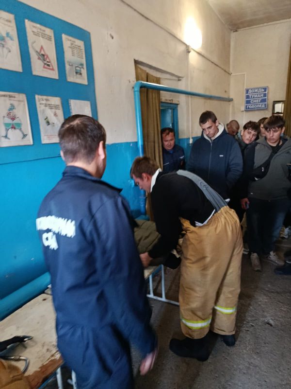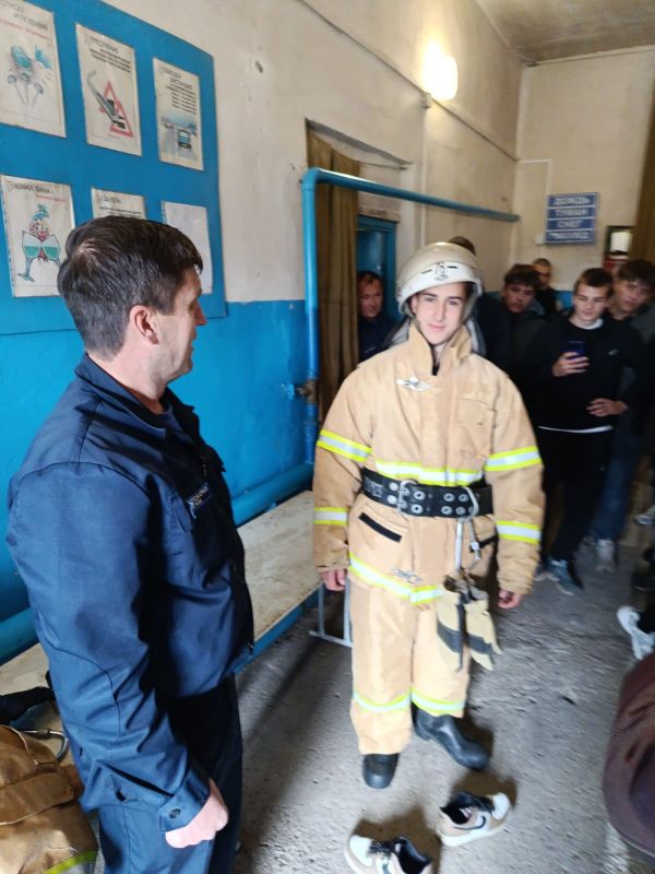 Старшим пожарным Костюк С А. была проведена беседа со студентами с последующей демонстрацией пожарной техники и боевой одежды пожарного .